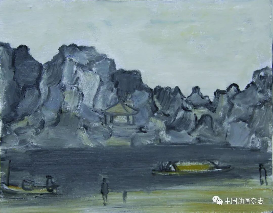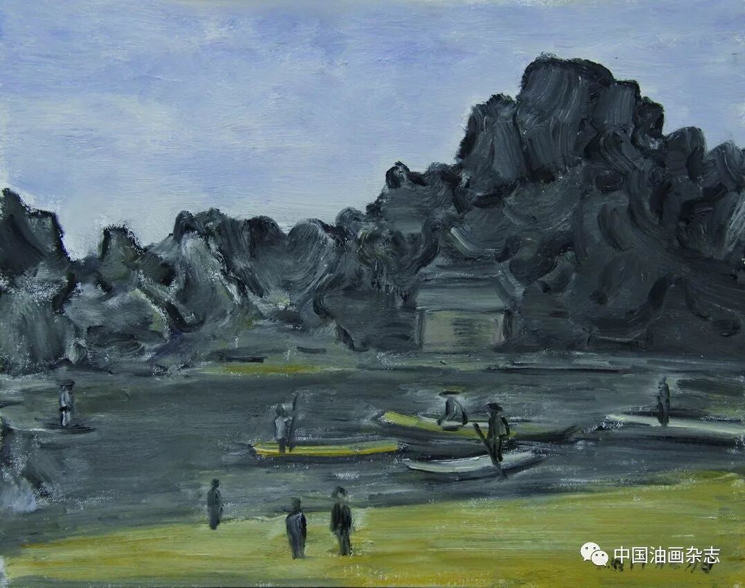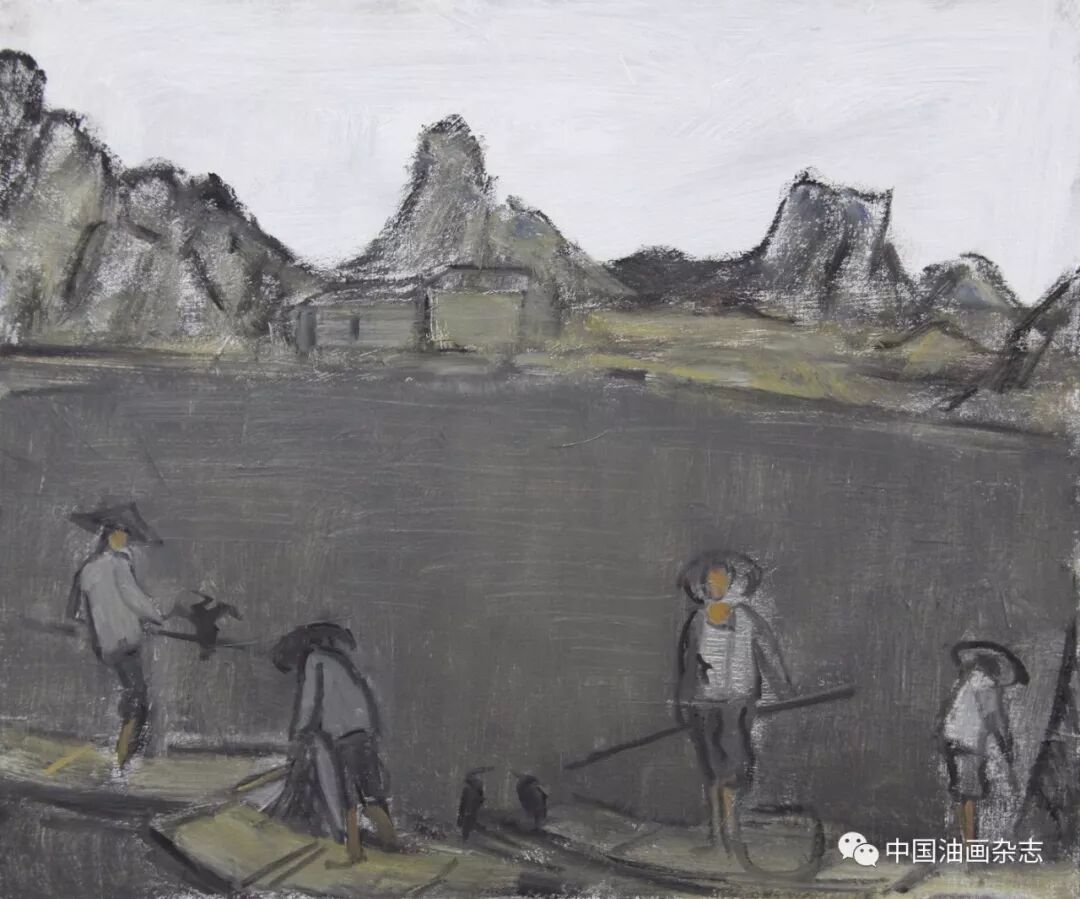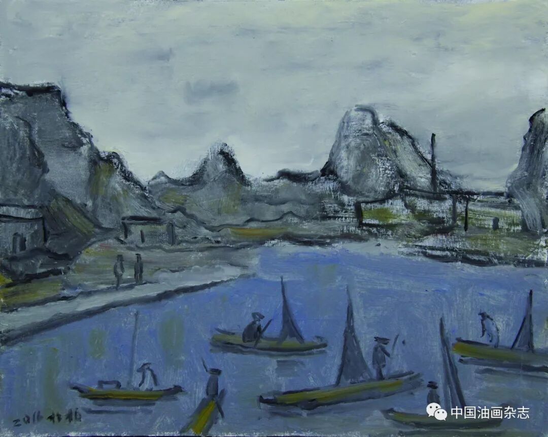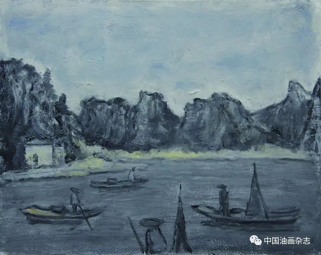 漓江捕鱼之一 40cm×30cm 漓江之晨 70cm×60cm 画,画得有意思不容易。赵老这辈子,走到这里恐怕是个忽然的飙升和转变。相对过去画遍了工农兵、“红光亮”、国展画的时代,我倒觉得现在的赵老是放空了过去,多了一层人书俱老的风度和阅历。 我认识赵老好多年,一直没见他这么画过,但不等于他没有朝这边向往过。大概是七八年前,他画过一些减弱了色彩的黑调风景,还有一点火气的,没想到今天能释然通达到这般境地。 减弱了色彩、明度和体积……一如黑白旧照,时光虚掉了实情,悄然中图像就罩上了一种意境。松柏先生笔下的图像,仿佛退远了时代的风景,老照片里的那种风景,迷人,不见得伤逝。风景从来都是等人来发现的,也从来都是等人来给予意义的。松柏先生的这种境像,满桂林找不到,却是独与松柏老的天分才情相约相会了。 桂林被画了很多年,太有谱了,但我看松柏先生的桂林,处处离谱,却处处像桂林。那种脱俗的气味,我在陈树人的桂林写生里见过,在一些老外镜头下的旧照中见过,但那都是在20世纪30年代的民国。今天倒是在松柏先生的画面里,重温了这种暖和迷人的桂林情调。 赵松柏是老桂林,桂林该是怎样,他有自己的记忆。 现在的漓江、遇龙河,热闹喧哗,莺歌燕舞。从观看理论来讲,这些都在赵老的画里被屏蔽了。于是,河面上就剩下了最本质、最纯粹、最诗意的那几样图像。回到画面,风景才有了魅力,现实,永远是风景的大敌,过于现实,风景就面临灾难。松柏先生的画让我看到了这个道理。松柏先生的画入此佳境,也许是阅历所致,也许是修养给予的悟性,也许是活得通达……而这一切都是徐徐缓来的一种自然的结果。要从画面里剔掉好多入眼过脑的东西,真的不容易。赵松柏是做到了,起码现在是做到了。 漓江之夏 50cm×40cm 2017年 竹筏捕鱼 50cm×40cm 2016年 漓江义渡 40cm×30cm 忆童年 70cm×60cm 2017年 山寨小景 70cm×60cm 2016年 漓江渔歌 70cm×60cm 远眺木龙塔 60cm×50cm 漓江初冬 50cm×40cm 象山捕鱼 50cm×40cm 童年记忆 50cm×40cm 塔山 50cm×40cm 四个捕鱼人 60cm×50cm 市郊风景 50cm×40cm 市郊的黄昏 60cm×50cm 秋游 50cm×40cm 漓江的下午 50cm×40cm 河滩放牧 70cm×60cm