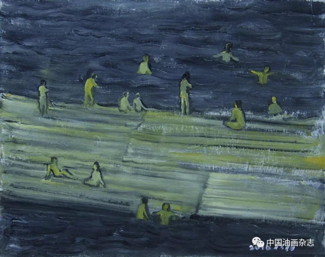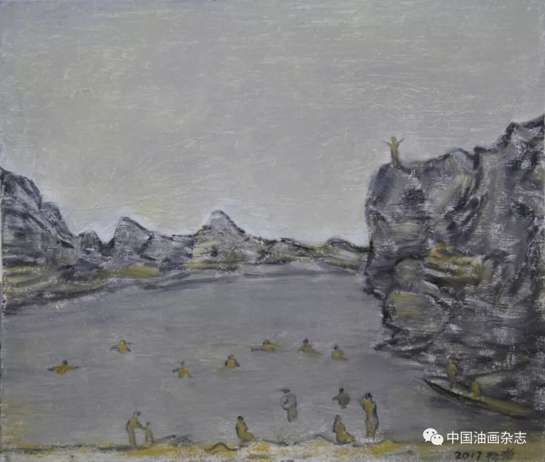 捕鱼的人 50cm×60cm 闲聊松柏 文/黄少鹏 我与赵松柏老师认识多年,但来往并不多,却始终有一种天然的亲近。他现在已经是七十多岁的人了,看起来就是一个在文化单位退休的普通桂林老头子,没有江湖上的那种艺术家气派,从外表上看也看不出哪里有画家的某种标记,聊起来也没有通篇的艺术大论,一切都感觉很平常,这也许是我感觉到亲近的原因。我对松柏老师以前的画并没有太深的印象,这也缘于我与他接触得并不多,或者说他不太会宣传自己。几年前偶尔看到他的画,非常喜欢,感觉松柏老师是一个可爱的老头子,这把年纪还能让自己越画越好,然而在他的画面中并不出现太高超的技术,画笔涂抹来去自然,朴素平常,可以看出他没有刻意要做出某种令人折服的东西,一切都是在平和、安静之中进行。看他的画有点像听一个人自言自语,他并没有注意到你的存在,只是在专心说自己记忆中的东西。松柏的图像有传统水墨的意味,但不是刻意的中西结合,而是选择了对物、对事陈述的最佳方式,他在说桂林,桂林的山、桂林的水、桂林的人和桂林的事,这是一个在那里生活了七十多年的老桂林人在说自己的感受。老人喜欢回忆是常事,他的图像大多画的不是现在的事,甚至也有离他年代更久远的。我认为松柏的画不好归于风情画或者风俗画,其实他对生活中的真实与具体并不感兴趣,甚至对现实都不感兴趣,他的东西是记忆的、似梦的,也可以说是精神上的。有朋友说松柏的画有民国味,我同意,他的画有一种文气,一种说不太清楚的民国书生气息,弱弱的,文文的,但很有内涵。 松柏的画有古味,有自己的一套规则,围绕山水、人物及树木随意安排,完全不顾及所谓的透视、比例,所有的东西都只是一种符号与组合,心到意到即可,画画真的做到返老还童。老了,退休了,对于社会的介入自然也少了,从画中可以看到赵老心中的清静,图像中的火气褪尽,没有世俗的争。图中的人物各得其所,各自活各自的,是一种很慢节奏的活法,赤裸的女人在水中或在岸上,打鱼的人只顾打他的鱼,这就是一个七十多岁老人心中孩童般的世界。 这两年与赵老有些来往,偶尔去桂林总想去见见他,他的工作室离家不算太远,租了市郊一处农户的房子,周边都是能入画的风景,然而年过古稀的赵老如今已经很少到户外写生了,只是在画室里画自己的画,桂林是他生活了一辈子的地方,年轻时的他数十次地下阳朔写生,在他的脑海中都是挥之不去的经过过滤的图像,每一幅图像都是赵老的精神寄托。他的画都不太大,但足够把内心的世界装进去。今年八月份路过桂林时,见了赵老,他说他最近身体欠佳,已有几个月不去画室了,我来了,特意陪我去了一趟,这一点让我非常感动!最近赵老的画作已逐步引起人们的关注,我劝朋友收藏他的画,跟朋友(朋友是桂林人)说收藏赵老的画就是桂林人收藏了桂林人画桂林的最好的画,让赵老的好画留在桂林,这不仅仅是个人的收藏,也是做了功德。 文至此,心中不免有点感慨,时下画界的江湖气和世俗习气盛旺,火气冲天,能真心安于画画的还有多少? 2017年11月24日 |