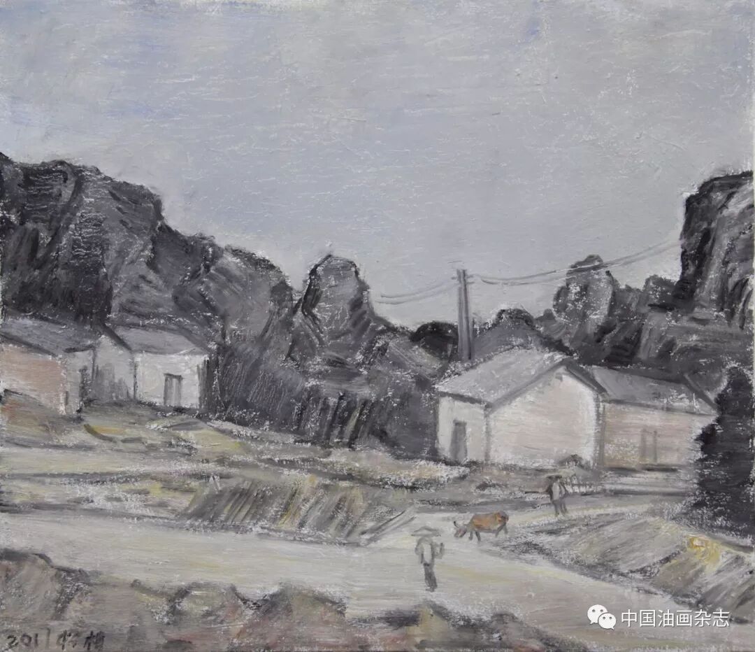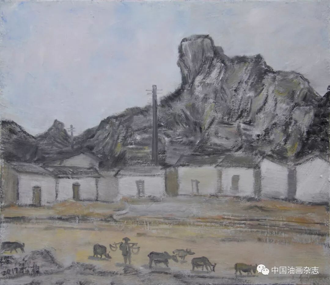 《中国油画》推介画家(3):赵松柏说说赵松柏 文/刘新 在广西看到赵松柏这样的画,有点意外,自然也是一种惊喜。难怪苏旅先生笔下直言“广西有个赵松柏”! 松柏先生年逾七十,受人尊戴,友人间均以“赵老”敬称。我面对赵老的画,很奇怪,好像一瞬间才搞明白赵老原本是活在自己的世界里。赵松柏的画有意思,让你着迷,其实画上的东西很简单,甚至还无意间隐去一些技巧。但这种简单就是有一种把你引向画面的拉力,一如面对关良、莫兰迪的魅力……这种素材在桂林的乡下不难见到,但在松柏先生笔下却是烂熟于心,随手拈来的。 所以好的风景画家都是“造境”高手。